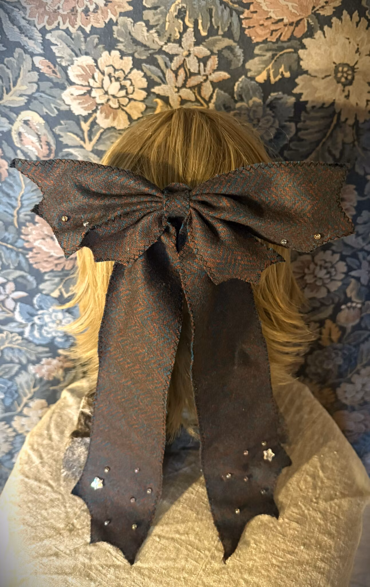 Dessa rosetter kan bäras i håret, fästas under hakan som en fluga eller dekorera era hem eller utstyrslar på andra sätt som bara er fantasi sätter gränser för- Spänner på baksidan av varje rosett har två olika typer av knäppningar vilket gör att de har ett brett användningsområde. Alla rosetter är sydda i ulltyg och sedan dekorerade på olika vis med spets och/eller pärlor (dessa dock i plast!). Se de olika bilderna för olika designs och versioner samt stylingexempel.